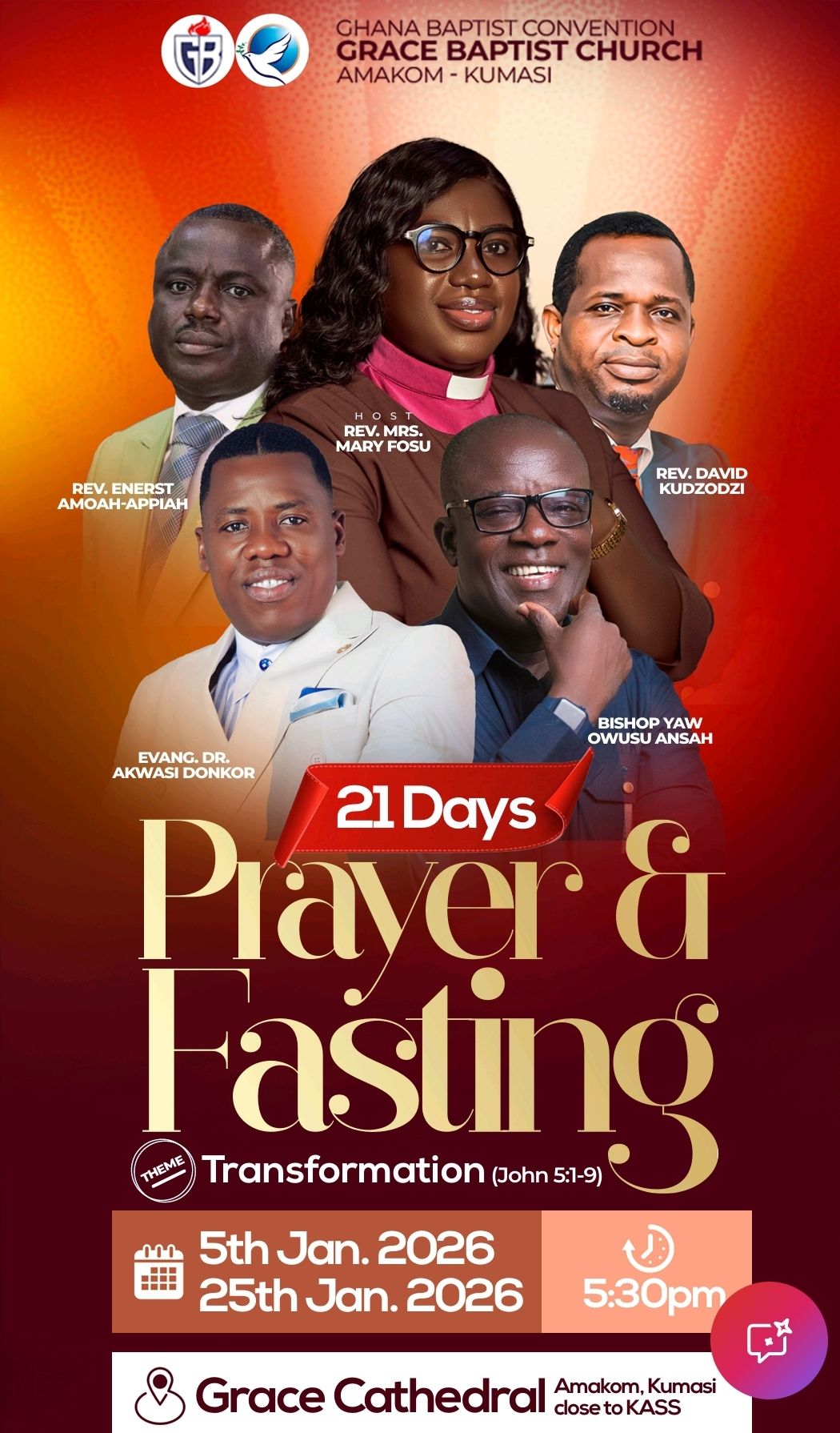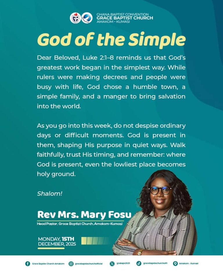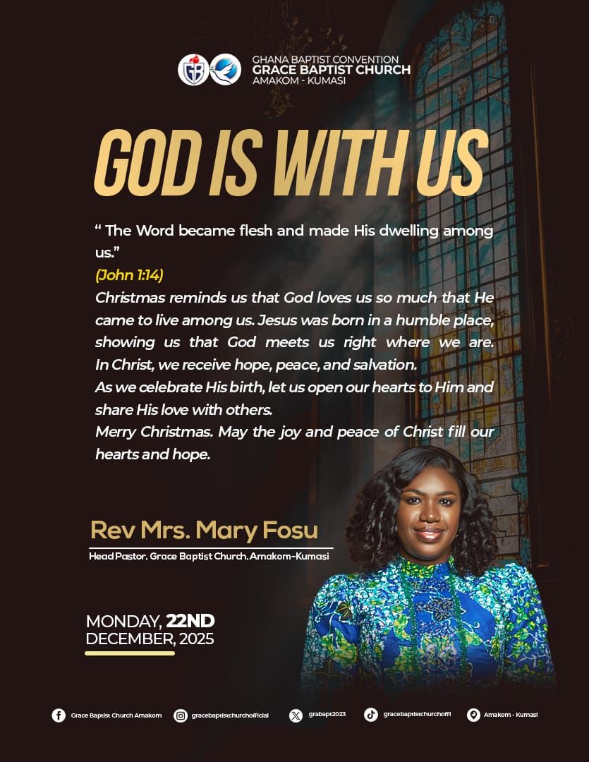 Rev Mrs. Mary Fosu is an ordained Minister of the Ghana Baptist Convention and is the Head Pastor of Grace Baptist Church, Amakom. She is the Vice President of the Ministers Conference of the Ghana Baptist Convention. Rev Mrs Fosu also serves as the Chairperson of the Kumasi Area Baptist Ministers Fellowship. She is also the Chaplain of the Ghana Baptist University College. Rev. Mrs Mary Fosu is a PhD candidate at the Religious and Human Development Department of the Kwame Nkrumah University of Science and Technology, Kumasi. She holds a Master of Philosophy in Religious Studies from the same University. She obtained her Bachelor of Theology Degree from the Christian Service University. Rev Mary Fosu is married to Rev Dr John Kwasi Fosu, and they are blessed with three children