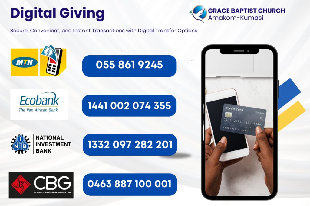At Grace Baptist Church, Amakom, we believe that giving is an act of worship and a powerful way to participate in God’s transforming work. Every donation—big or small—helps us reach souls, build communities, and extend the love of Christ where it is needed most.