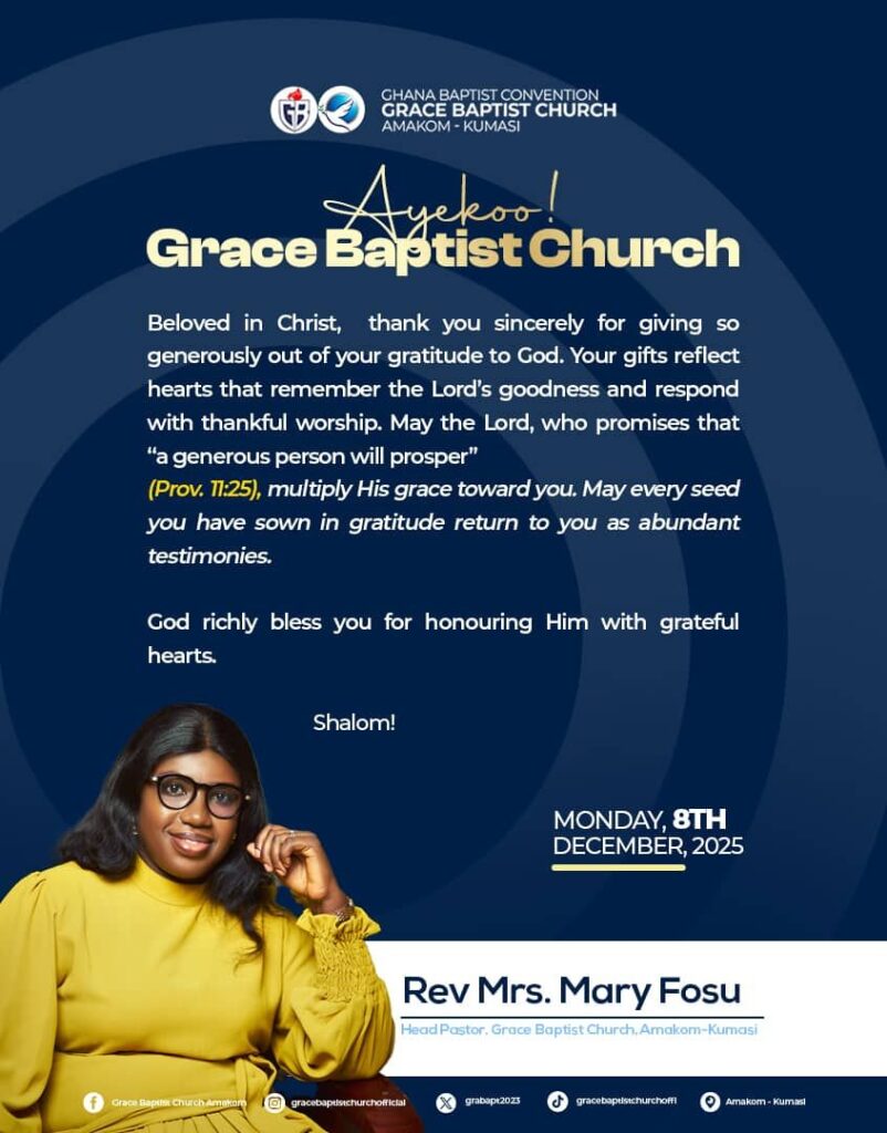 WEEKLY MESSAGE FROM THE DESK OF THE HEAD PASTOR, REV MRS MARY FOSU